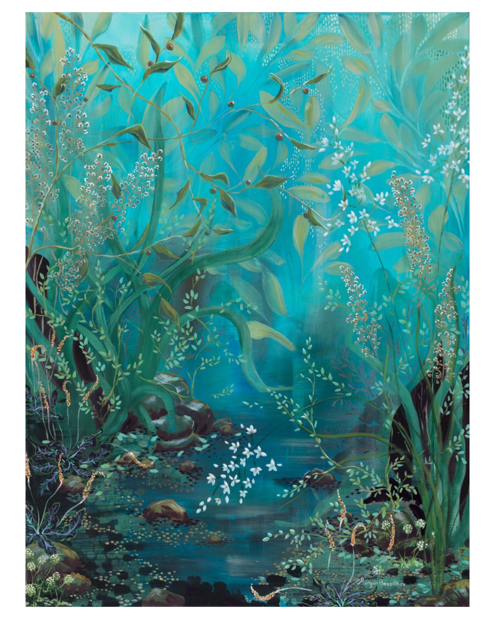 The composition emphasizes the idea that the path ahead is always unfolding, even as we remain grounded in the present moment. The foreground of the painting represents the path, inviting us to move forward through the landscape with trust and faith. It encourages us to embrace the unknown, confident that every step brings us closer to our true selves.